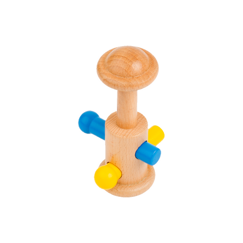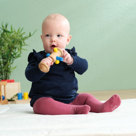 Entdecke das perfekte Greifspielzeug für kleine Entdecker - den Dolio! Dieses hochwertige Babyspielzeug zum Greifen ist speziell darauf ausgelegt, die Feinmotorik, den Tastsinn und die Neugier von Babys ab 3 Monaten zu fördern. Das Greifspielzeug aus Holz ist sicher für kleine Hände und Münder. Mit seiner ergonomischen Form, beweglichen Elementen und leuchtenden Primärfarben (Gelb, Blau und Rot sind die ersten Farben, die Babys erkennen können) lädt das Greifspielzeug ein Baby zum Erkunden, Schütteln, Ziehen und Schieben ein - zunächst mit einer und schließlich mit beiden Händen gleichzeitig!
