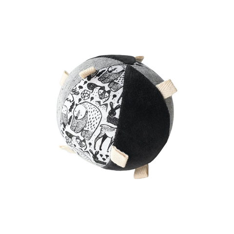 Der Montessori Ball mit seinem kontrastreichen schwarz-weiß Motiv ist leicht zu greifen, weich und stimuliert die Entwicklung von Motorik sowie die visuelle Wahrnehmung deines Babys in unterschiedlichen Entwicklungsphasen. Die Struktur und Form lässt sich sowohl mit Händen, als auch mit dem Mund erkunden und die Schlaufen, in die dein Baby seine Finger stecken kann, machen diesen Greifball ganz besonders spannend! Im Spiel wird dein Baby lernen, wie sich runde Objekte wie Bälle oder Kugeln bewegen und wie man diese interessanten Bewegungen durch Rollen, Werfen oder Kicken selbst auslösen kann. Und das Tolle: Durch seine besondere Form rollt der Ball nicht weit weg und bleibt in Reichweite deines Babys.